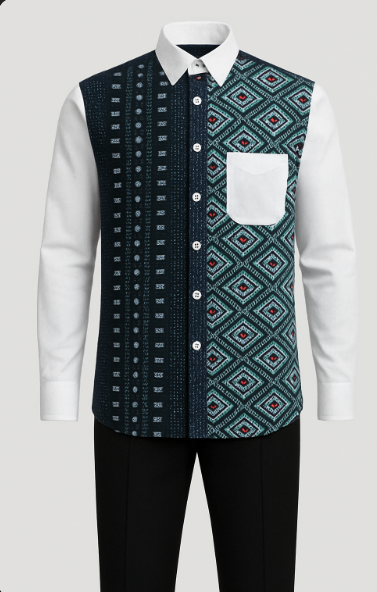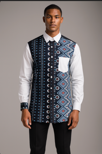 The Taji Elite Set blends bold cultural influence with refined modern design. “Taji,” meaning crown, reflects the regal edge of this set — featuring a crisp white long-sleeve shirt detailed with a striking African geometric motif and paired with tapered black dress pants for a clean, elevated silhouette. Whether for cultural celebrations, upscale events, or everyday confidence, this set delivers power, purpose, and prestige in every thread.